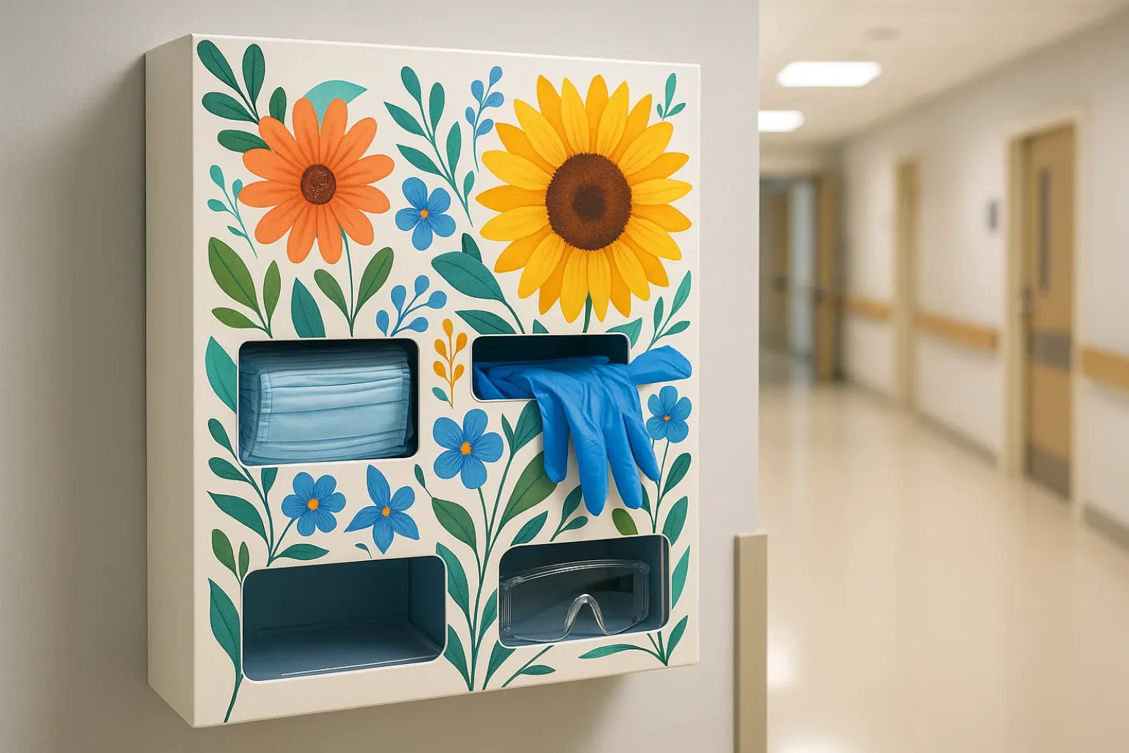 PRECOBOX propose des distributeurs d’EPI en plastique rigide entièrement personnalisables. Les établissements peuvent intégrer leur logo, choisir une couleur adaptée à leur charte graphique ou ajouter des pictogrammes d’hygiène directement sur la façade du distributeur. Cette personnalisation facilite l’identification des équipements et renforce la visibilité des consignes de sécurité dans les couloirs et à l’entrée des chambres.