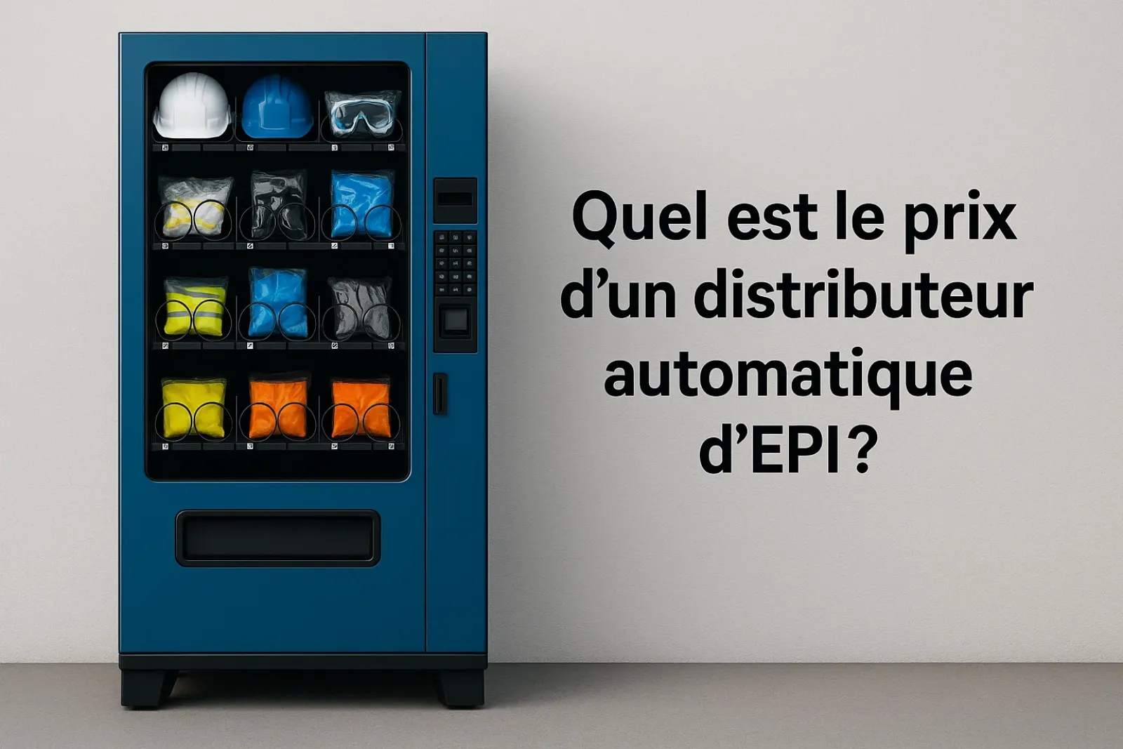 Le prix d’un distributeur automatique d’EPI dépend de plusieurs critères : le modèle (préconçu ou sur mesure), le niveau de personnalisation (façade imprimée, logo, pictogrammes) et les accessoires intégrés (supports SHA, magnets, chariot mobile…).