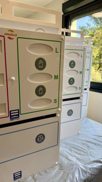 Intégrez PRECOBOX à votre démarche RSE hospitalière. Un distributeur d’EPI français, durable et modulable, conçu pour réduire le gaspillage et valoriser la responsabilité environnementale de votre établissement.